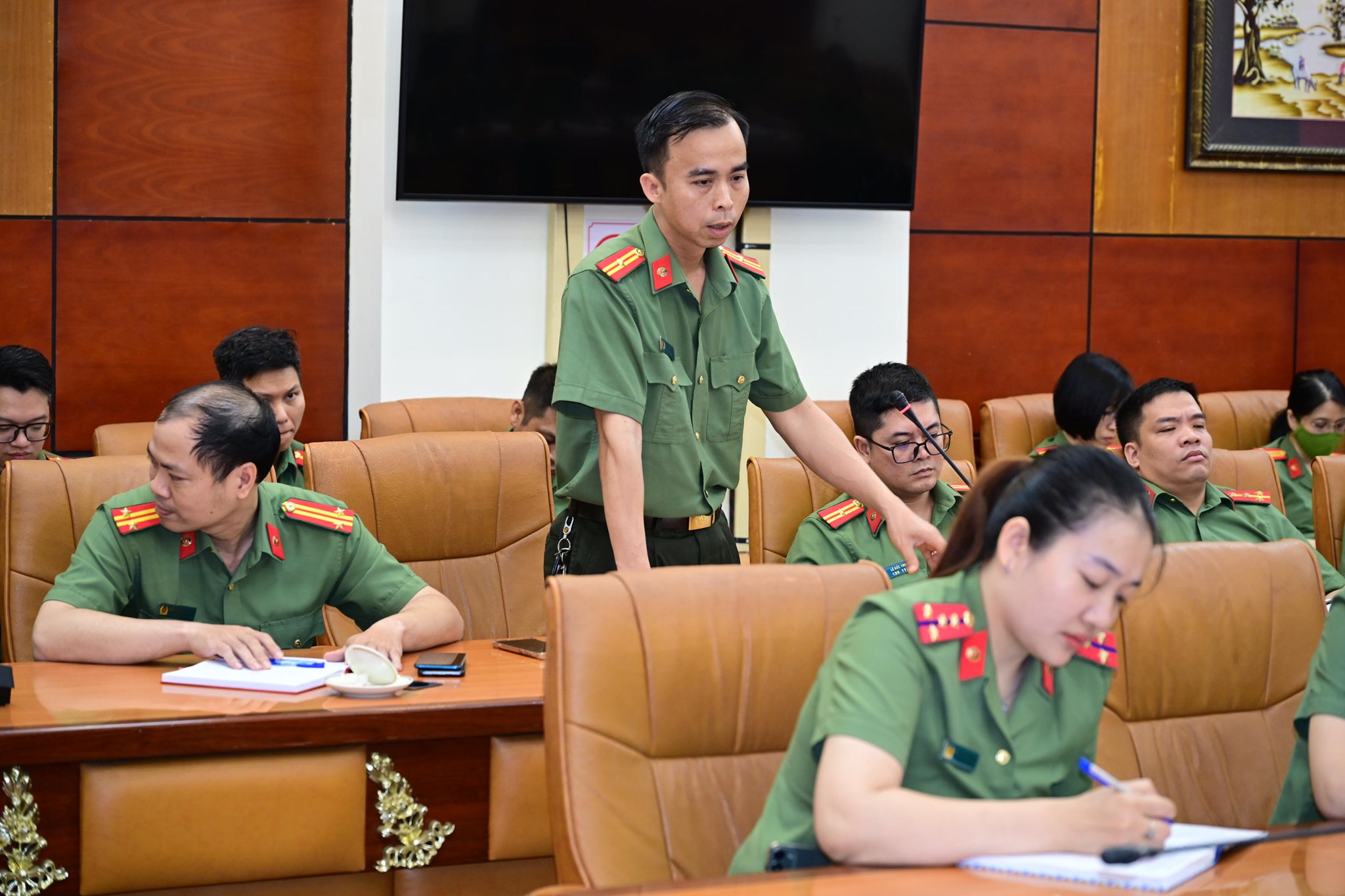 Đại diện, lãnh đạo, chỉ huy, cán bộ chiến sĩ Phòng Tham mưu đã thẳng thắn trao đổi các vấn đề nêu ra, đồng thời đề nghị một số giải pháp về ứng dụng khoa học kỹ thuật nâng cao hiệu quả công tác Công an, rút ngắn thời gian thực hiện nhiệm vụ...với mục tiêu xuyên suốt “Tham mưu đi trước về sau”.