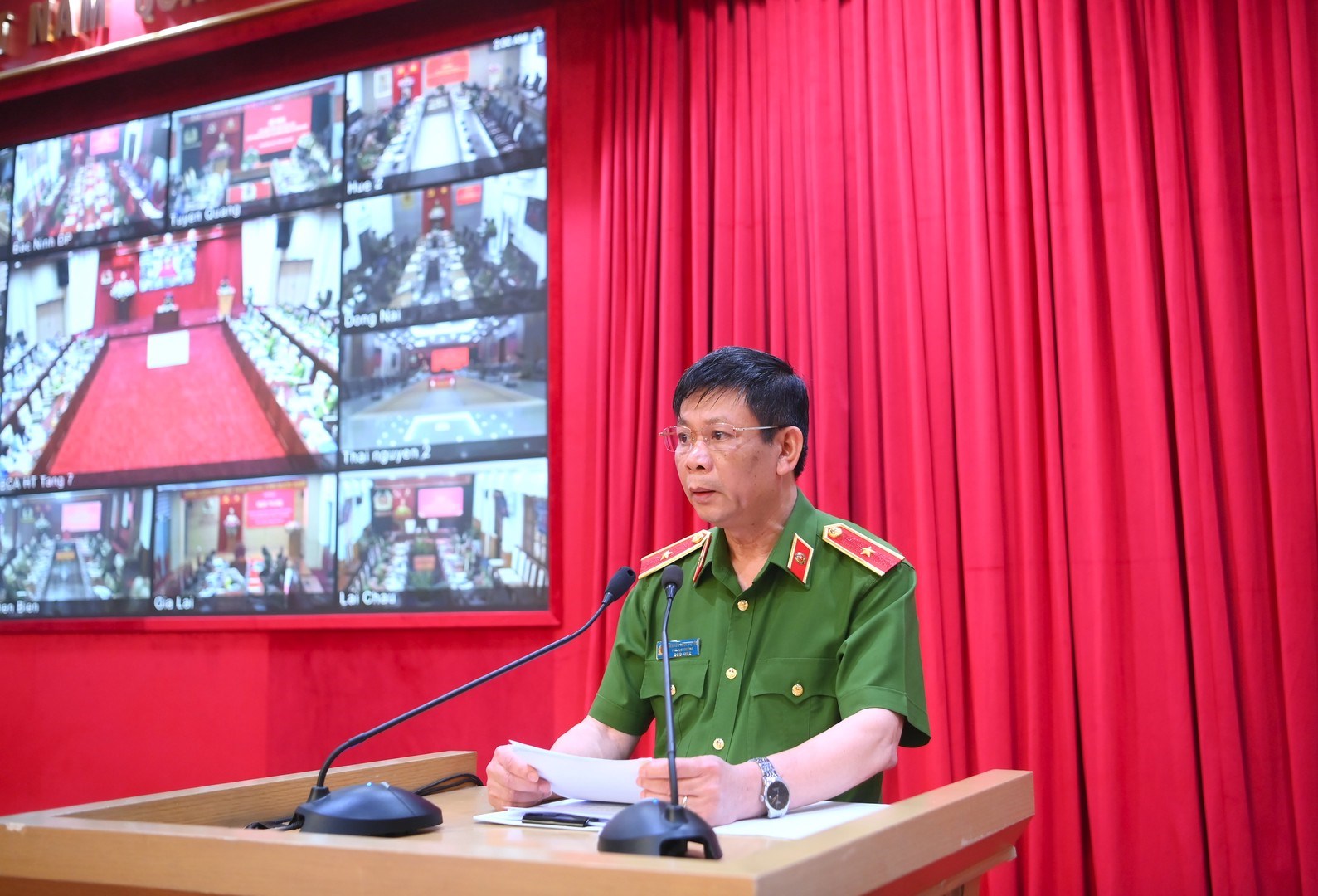 Thiếu tướng Nguyễn Ngọc Tuyến, Phó Cục trưởng Cục Cảnh sát quản lý trại giam, cơ sở giáo dục bắt buộc, trường giáo dưỡng, Ủy viên Ban Chỉ đạo về đặc xá năm 2026 của Bộ Công an thông báo các quyết định và quán triệt nội dung tổ chức thực hiện công tác đặc xá.