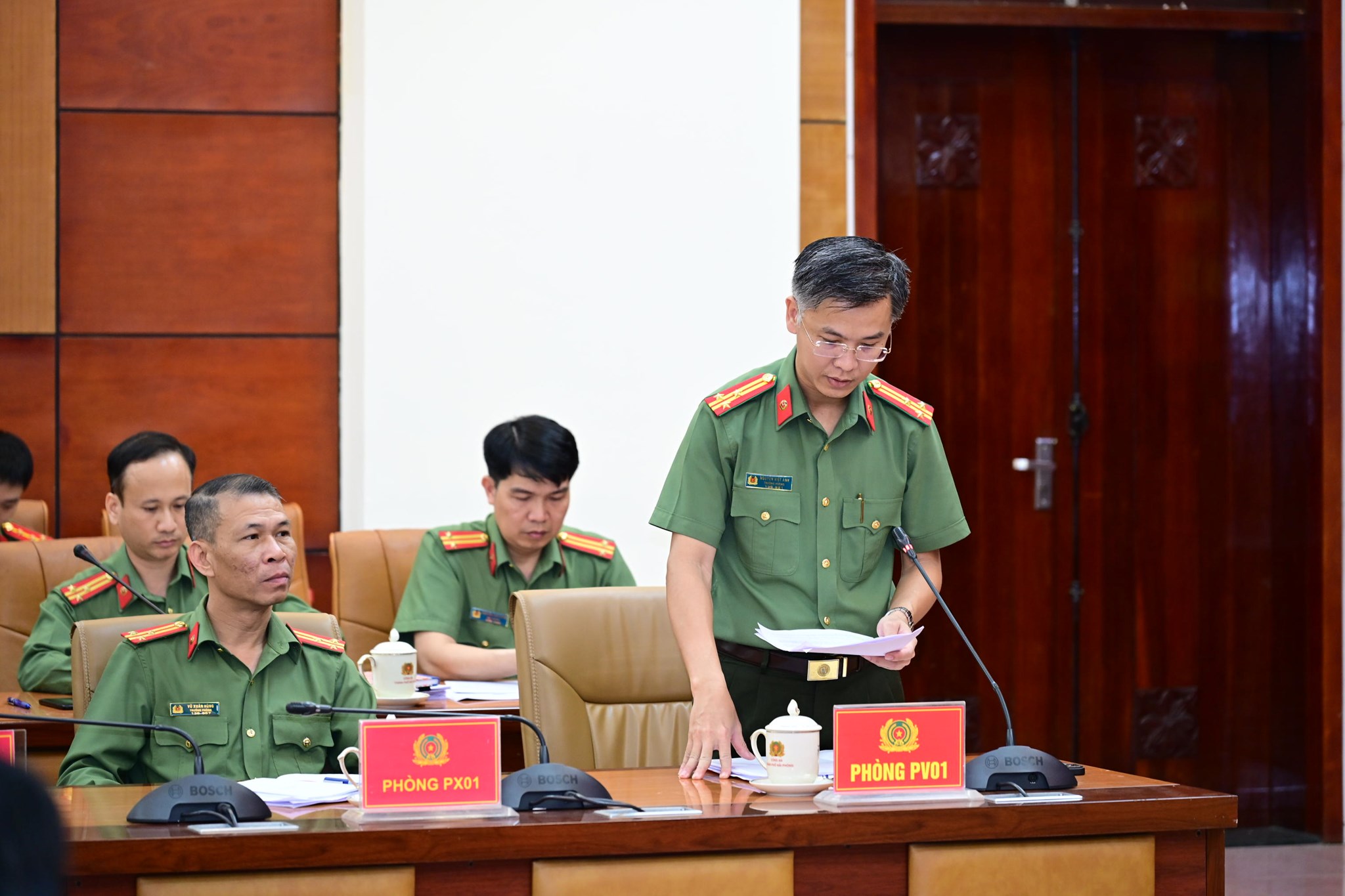 Thượng tá Nguyễn Việt Anh, Trưởng Phòng Tham mưu CATP báo cáo tại hội nghị